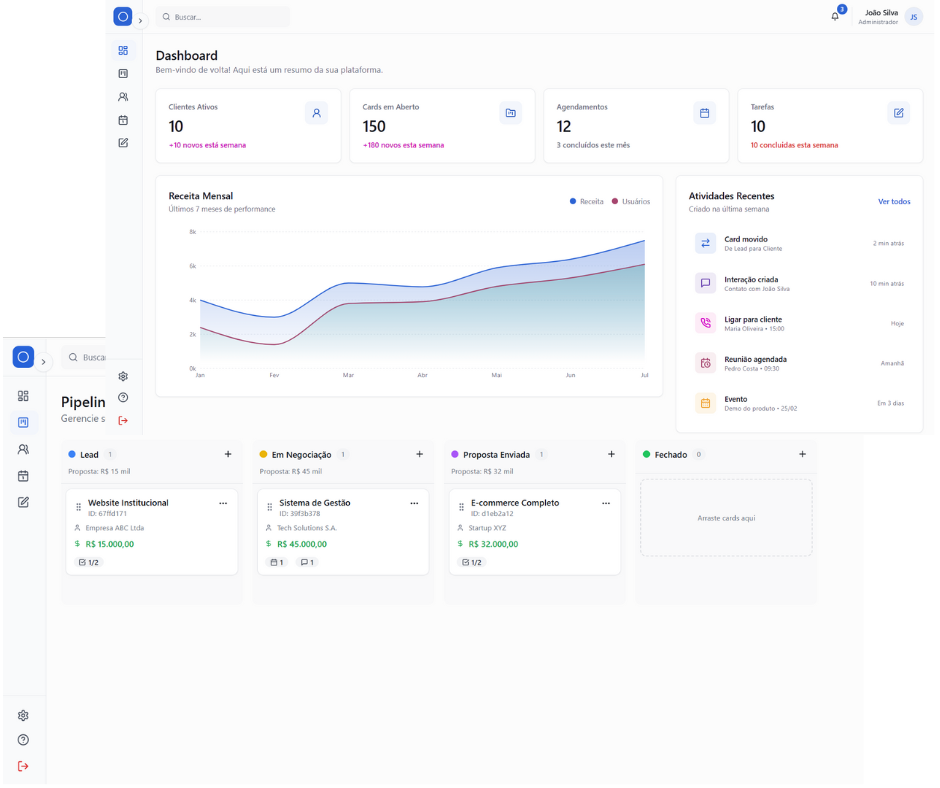 Ferramentas inteligentes para organizar, acompanhar e escalar seus negócios.
